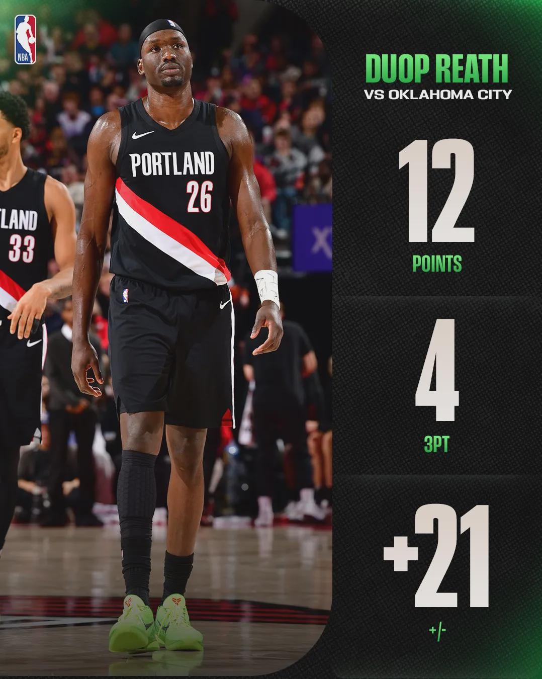 然而,在这场焦点战中,中国球员杨瀚森却连续三场未能获得出场机会(DNP),进入轮换阵容的希望愈发渺茫。随着克林根、罗威和里斯的轮番爆发,再加上开拓者长时间使用小个阵容,杨瀚森的出场时间被进一步压缩。在与雷霆的比赛中,里斯替补出战20分钟,三分球5投4中,得到12分2助攻,正负值+21为全场最高,表现十分抢眼。
