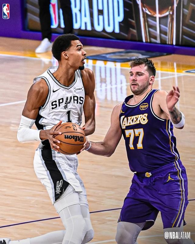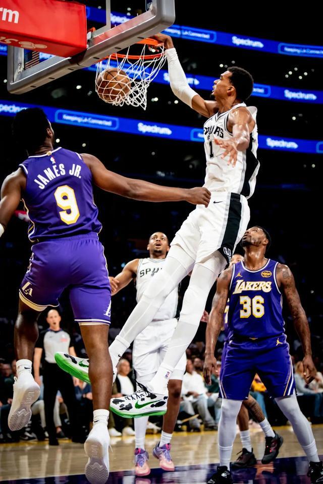 面对湖人时,文班亚马同样陷入困境:14投5中,三分2中0,得到19分8篮板却出现5次失误与6次犯规,最终提前离场。湖人的防守策略以错位为主,斯玛特主防,八村垒、拉拉维亚等前锋轮流顶防,甚至东契奇也参与防守。只要文班在内线接球,湖人的包夹便迅速到位,速度之快常令其措手不及。