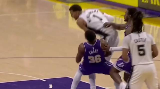 前最佳防守球员斯玛特在防守端发挥关键作用:他不仅错位顶防,还刻意制造文班进攻犯规。连续两个回合,斯玛特分别造成文班进攻与防守犯规,尽管此前被文班封盖,仍毫不畏惧。老将的经验迅速传染全队,末节关键时刻八村垒又造文班带球撞人,导致其六犯离场。