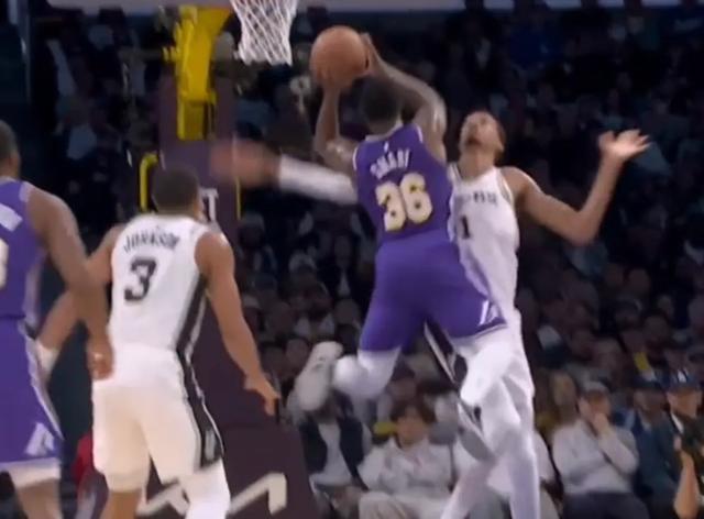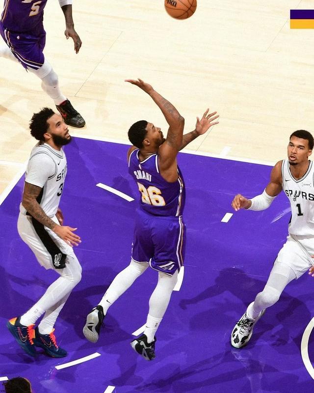 湖人还针对性地放空文班的三分投篮。本赛季文班对抗能力显著提升,更乐于在内线出手(篮下出手占比近一半,命中率66.7%),但三分出手次数大幅下降(场均3.3次,较上赛季减少5.5次),命中率仅26.1%。湖人赌其三分不准,结果文班2次三分出手全部打铁,后续甚至放弃出手。与太阳一战不同,马刺此役三分命中率达39.4%,巴恩斯在底角回应了大量空位三分,但湖人仍通过制造文班犯规将其逼下场。
