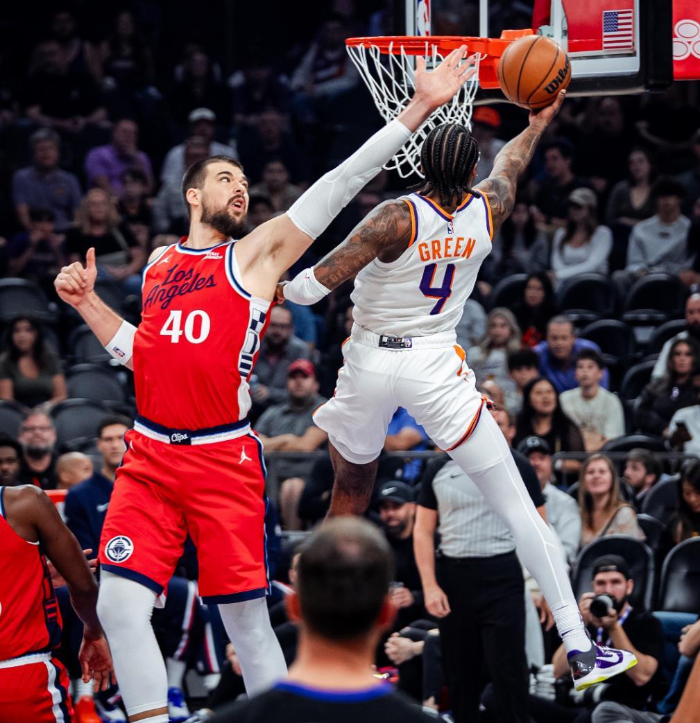 下半场再战,快船又是熟悉的味道,5分钟不到的时间,被太阳打出一波24-8攻击波,反超来到16分。暂停回来,快船还是不能得分,布克和杰伦-格林联手再得4分,太阳一举确立20分的领先优势,比赛没有悬念了。快船连造杀伤苦苦支撑,末节太阳延续火力,又是11-3的攻击波,再度将分差拉开到20分以上。泰伦-卢换下主力,投子认负。最终,太阳115-102轻松击败快船。