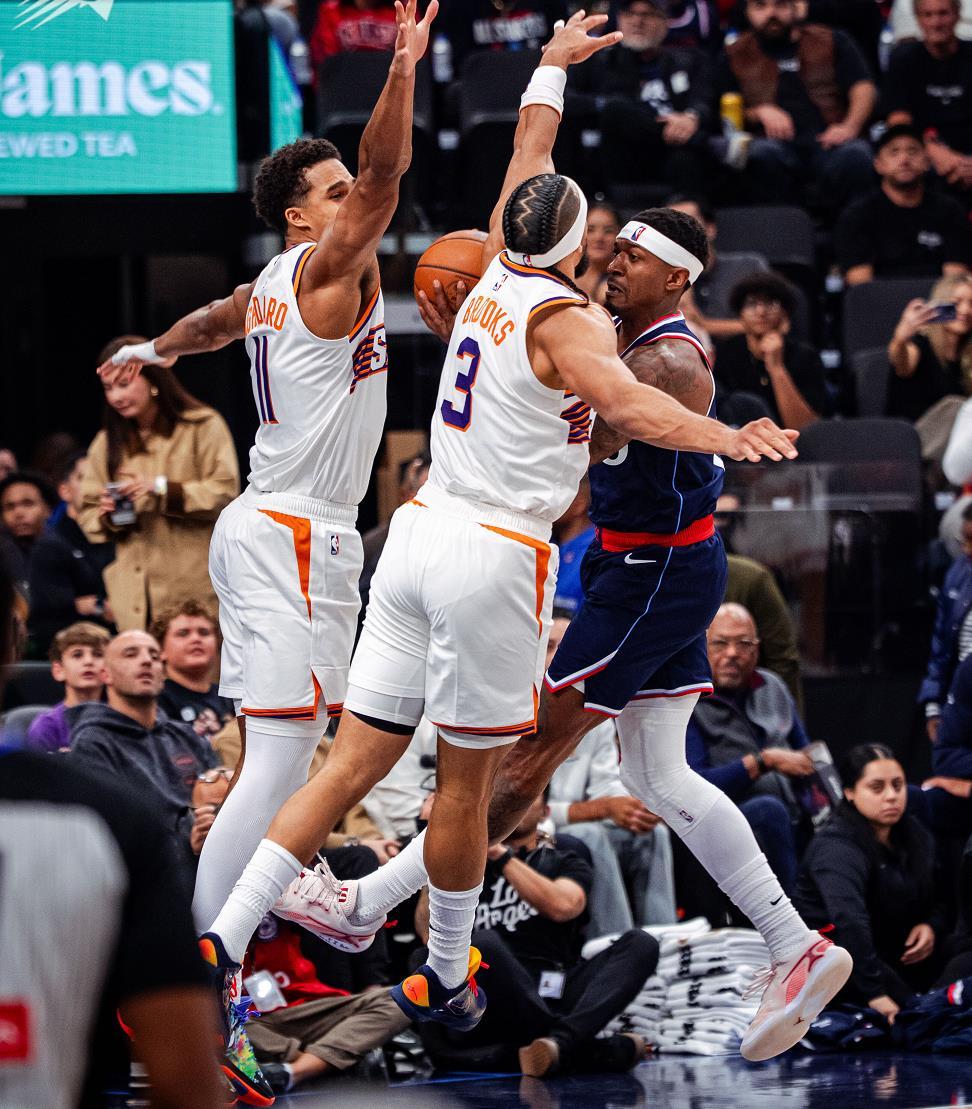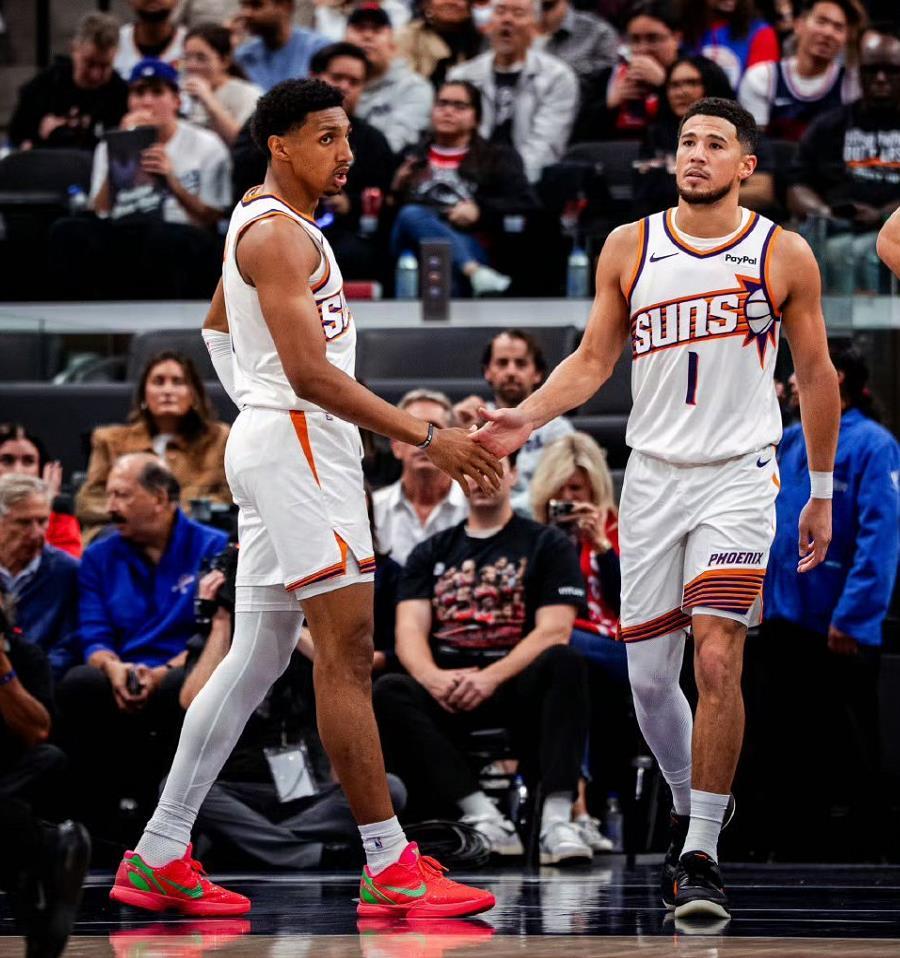 二号功臣(布克):22中10,得24分6篮板7助攻3抢断,正负值+11。全场比赛除了第二节发挥不好外,无可挑剔。第三节连续三分球拉开分差,赢球二号功臣。