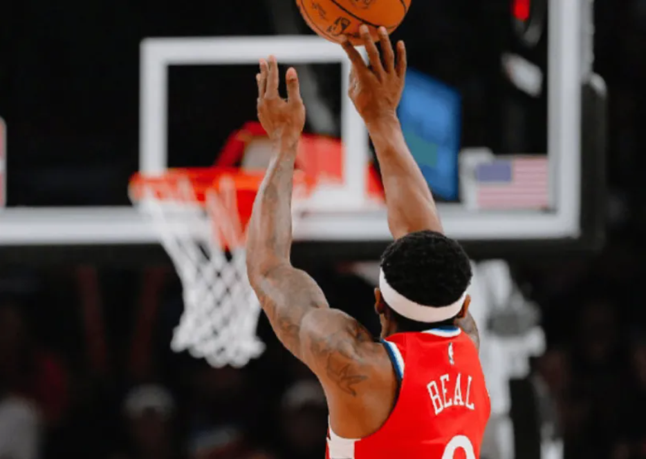 休赛期用鲍威尔换来比尔的操作,如今看来堪称灾难。这位三届全明星本赛季场均12.3分,命中率38.7%,与4年2.08亿的顶薪合同形成强烈反差。对阵太阳的比赛中,其-23的正负值与多次关键失误,直接导致球队第三节崩盘。