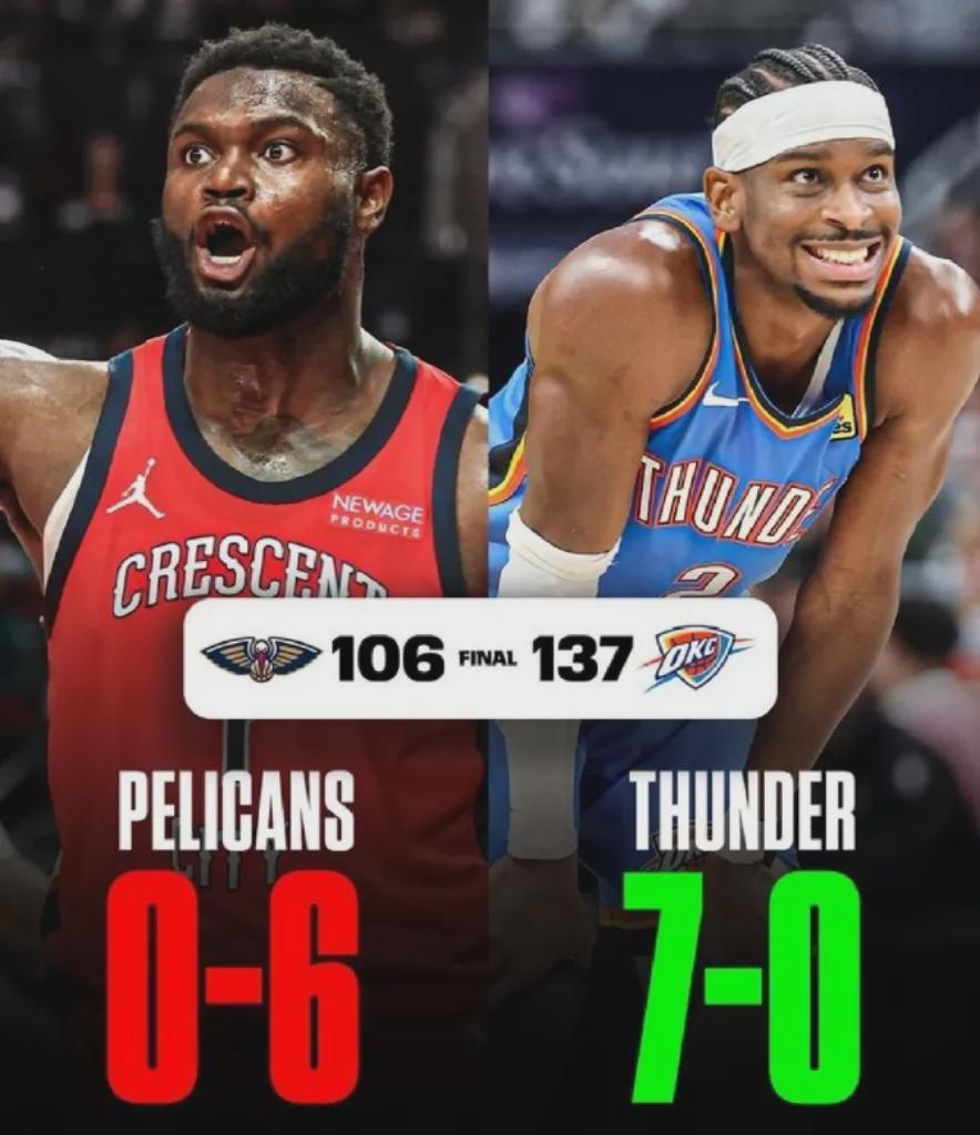 今天早些时候,鹈鹕对阵雷霆,结果以106比137惨败,目送雷霆开季豪取7连胜,未尝一败。而鹈鹕自己,则是开季6连败,与东部的篮网并列联盟垫底,这样的成绩无疑让球迷们大失所望。