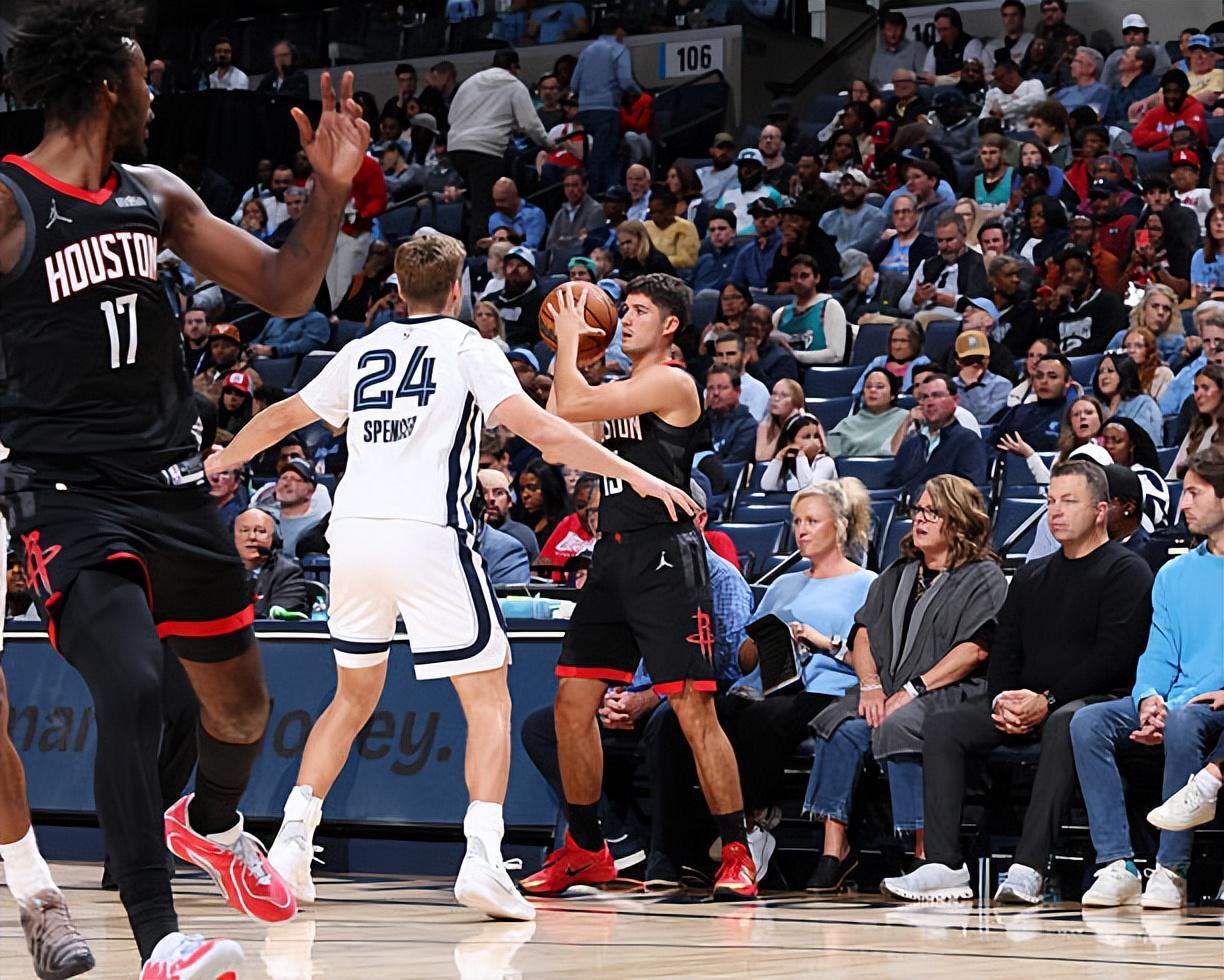 本场比赛中,火箭队的替补控卫里德-谢泼德(Reed Sheppard)的表现尤为引人注目。谢泼德全场出战16分49秒,投篮7中5,三分线外4中2,罚球1中0,最终得到12分、1篮板、1助攻和2抢断的数据,同时还有1次犯规,正负值为-3。面对近况不佳的灰熊队,谢泼德充分展现了自己的得分能力,通过多种方式为球队贡献了分数,投射能力也得到了充分体现。然而,在其他方面,谢泼德的表现则相对一般,传球和组织能力未能充分发挥,防守端的效果也不尽如人意。尽管如此,他仍在本场比赛中起到了一定的作用,为球队的胜利贡献了自己的力量。