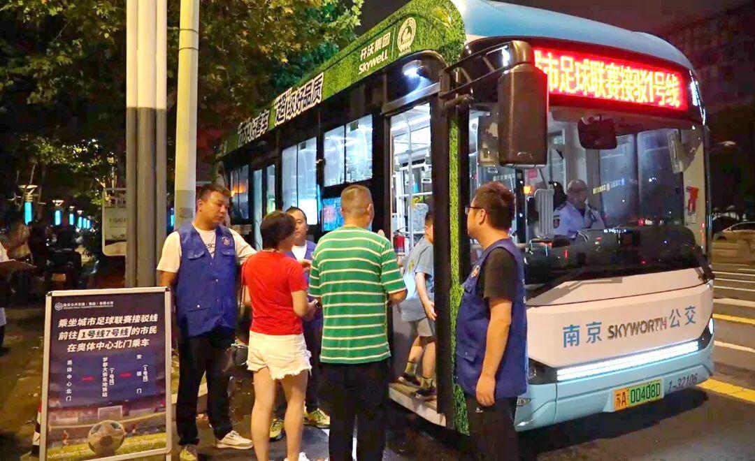 这条精心规划的观众接驳专线,从奥体中心出发,穿梭于梦都大街、雨花南路、雨花西路等城市动脉,一路直达安德门地铁站,无缝衔接了城市交通网络。它不仅高效疏导了赛后人流,更凭借贴满赛事主题的车身视觉,成为金陵城中一道流动的“绿色风景线”,让每一位乘客都能感受到绿色出行的魅力。