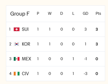 F组:韩国击败墨西哥,但再次与瑞士同组,世界杯历史上韩国多次被瑞士淘汰。