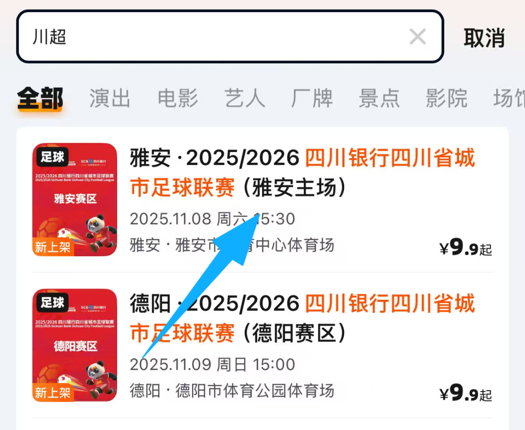 11月8日15:30,川超联赛川西赛区第8轮关键战将在雅安市体育中心激情开赛!雅安貊貊队主场迎战攀枝花攀钢钢铁勇士队,首回合1:1平局的悬念即将揭晓。更令人心动的是,仅需9.9元即可购票入场,还能享受“看球+美食+抽奖”三重福利!