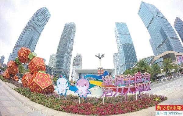 横琴口岸门口装饰了十五运吉祥物“喜洋洋”和“乐融融”,营造出浓厚的赛事氛围。供图:横琴粤澳深度合作区行政事务局、华发体育