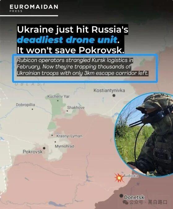 俄军"鲁比孔"无人机部队的部署加剧了乌军困境。该部队试图通过3公里缺口封锁乌军,若补给线被彻底切断,乌军将重蹈巴赫穆特、阿夫迪夫卡战役的覆辙。泽连斯基关于"高效消灭敌军"的表态,更多是维持国内信心的政治需要。
