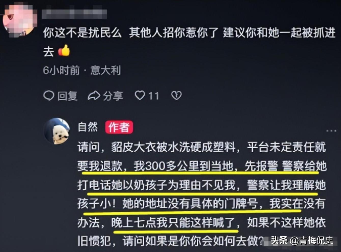 事情起因于王女士售出的一件价值2000元的貂皮大衣。在交易时,王女士明确告知买家,这件貂皮大衣不能水洗,否则会严重损坏。然而,买家在收到衣服后,不仅违反了这一规定,还理直气壮地要求退货并索要退款。