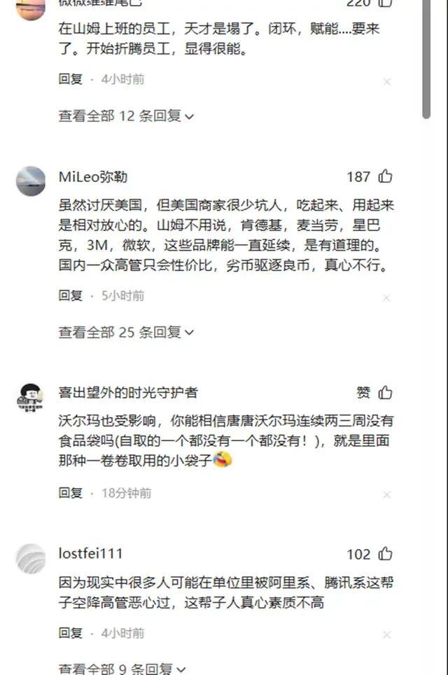 公众的抵触,其实是一种集体觉醒。大家看多了“大厂神话”的崩塌:收购一堆企业,真正做好的没几个;口号喊得震天响,“福报论”“狼性文化”却让人心寒。如今看到阿里高管空降山姆,自然警惕:是不是又要用烧钱换增长?是不是又要牺牲品质换数据?