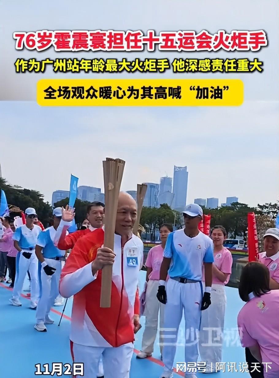 要说这俩老爷子,那精神力跟用不完是的,今年霍震寰已经 76 岁了,是广州站年纪最大的火炬手,他自己也说,当时参与传递的时候心里多少有点小紧张,但更多的还是激动和自豪。