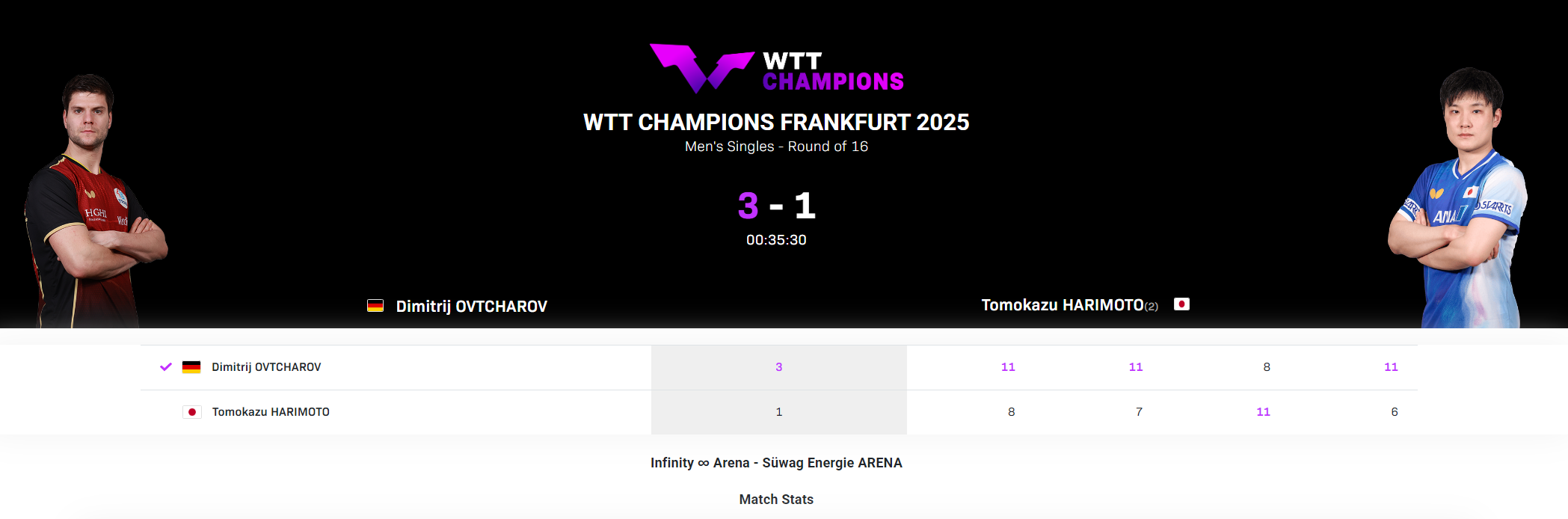 北京时间11月7日,WTT法兰克福冠军赛男单1/8决赛上演了一场令人瞠目结舌的爆冷对决。日本乒坛新星、现世界排名第四的张本智和以1-3的总比分不敌37岁的德国老将奥恰洛夫,四局比分分别为8-11、7-11、11-8、6-11。这场比赛不仅让37岁的奥恰洛夫完成了超级爆冷,更让日乒一哥张本智和连续两站赛事止步16强。
