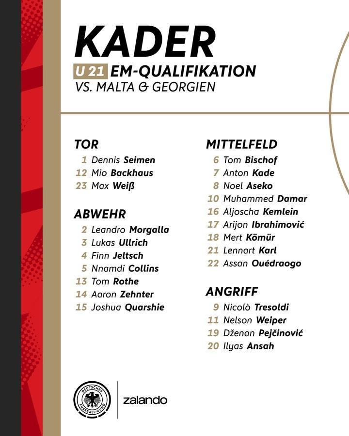 后卫线方面,莫尔加拉(波鸿)、卢卡斯-乌尔里希(门兴)、耶尔奇(斯图加特)、科林斯(法兰克福)、汤姆-罗特(柏林联合)、岑特(沃尔夫斯堡)以及夸希(南安普顿)等球员将组成坚固的防线,为球队提供稳定的后防支持。