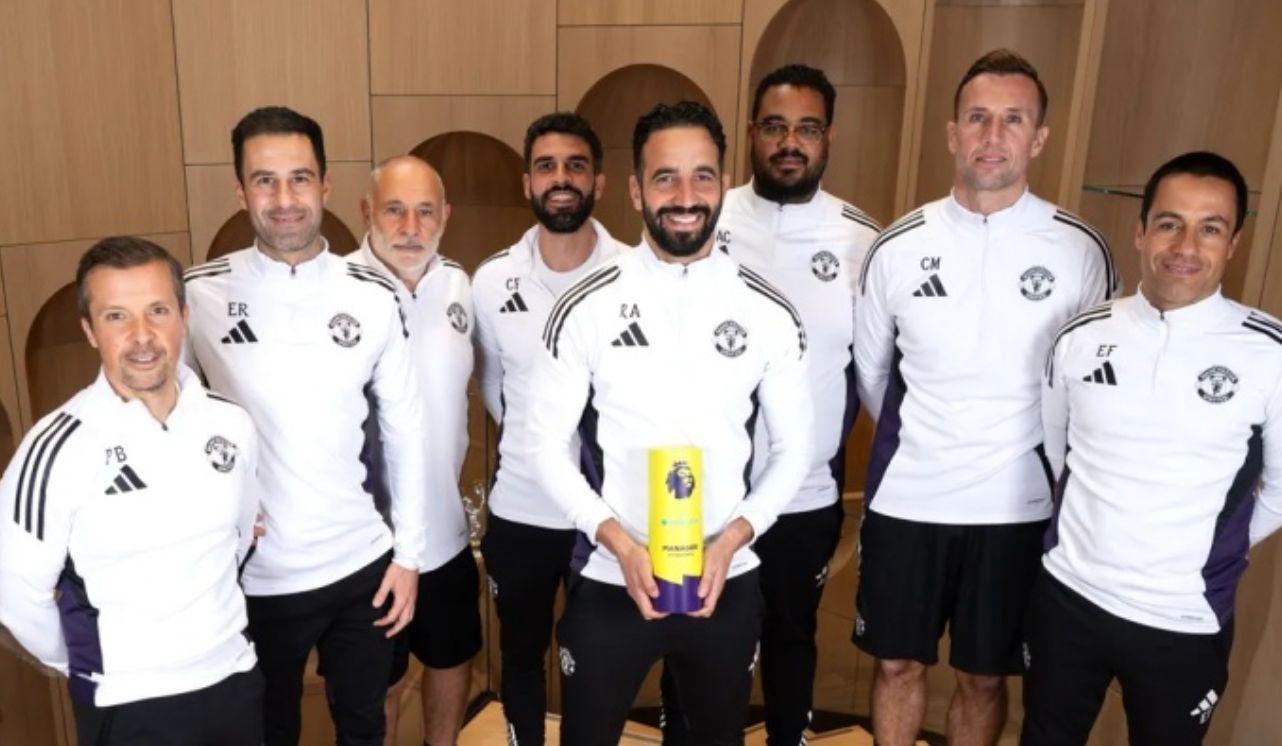 在月最佳教练的评选中,阿莫林凭借出色的执教表现,击败了阿尔特塔、埃梅里、伊劳拉等强劲对手,首次当选英超月最佳主帅。领奖时,阿莫林特意将教练团队的其他7名成员一同请上领奖台,向外界表明这是团队所有人的共同努力。面对镜头,阿莫林露出了久违的笑容,他深知这份荣誉属于整个团队。
