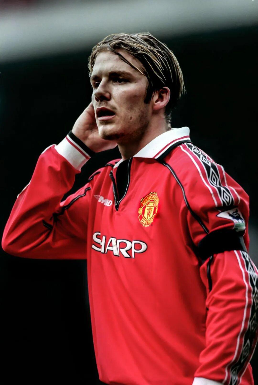 1996年,贝克汉姆首次入选国家队,并在联赛最后一轮对阵托特纳姆热刺的比赛中,用一记25码外的弧线射门追平比分,帮助曼联夺得四年里的第三个联赛冠军。同年,他在对阵温布尔顿的比赛中,中场一记远射,打入了那记传奇的七十米吊射。那一刻,他金发飘洒,阳光灿烂,成为英国足球的象征。《卫报》甚至称,他是英国唯一能抵抗1997年《泰坦尼克》和莱昂纳多·迪卡普里奥热潮的人物。坎通纳退役后,贝克汉姆继承了曼联7号球衣,成为世界的宠儿。