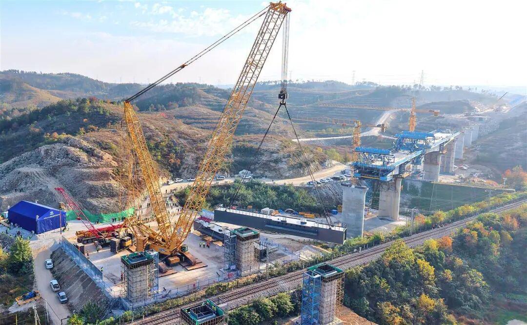 周家田村跨麻武线特大桥位于湖北红安境内,是合武高铁湖北段的重点控制性工程之一。这座特大桥全长1195.375米,共设32孔,此次成功完成吊装的2榀钢盖梁,作为大桥建设的关键构件,其顺利就位为大桥的后续建设奠定了坚实基础。