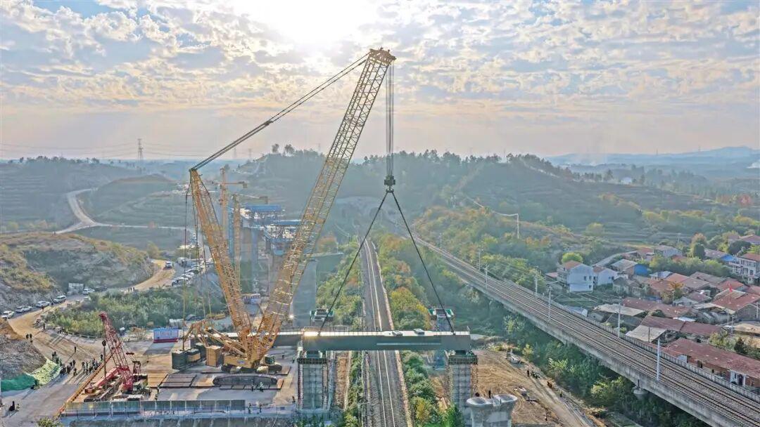 11月6日,随着最后一块钢盖梁精准就位,新建合武高铁周家田村跨麻武线特大桥的钢盖梁吊装施工任务圆满完成。这一关键节点的顺利推进,不仅标志着合武高铁建设迈出了重要一步,取得了阶段性成果,更为后续工程的全面推进按下了“加速键”。