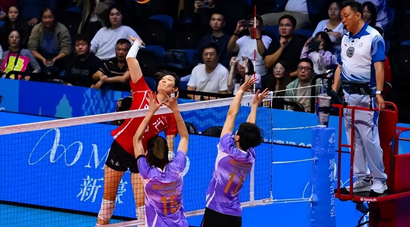 河南女排直落三局击败卫冕冠军天津队(25-21、25-15、25-22),终结对天津的连败纪录,创下队史全运会正赛突破性胜利。朱婷领衔河南队,贡献全场最高27分(38扣23中,成功率61%,4拦网),三局局点均由她终结,第三局赛点更是以标志性“单脚起跳后三强攻”锁定胜局。