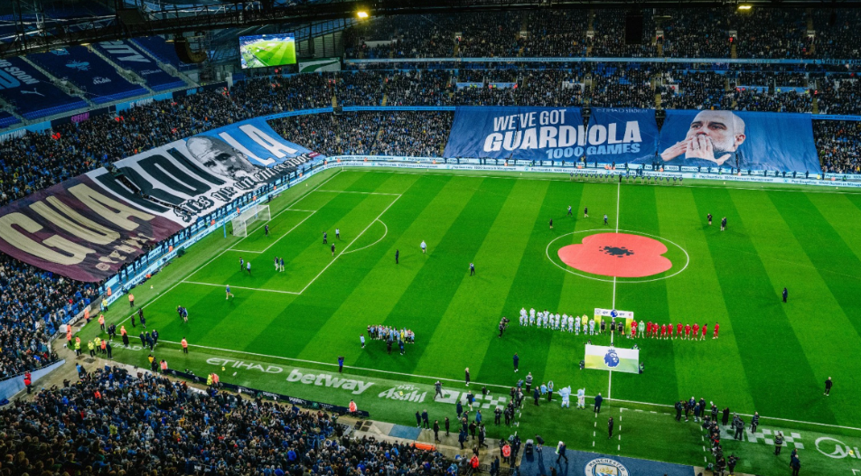值得一提的是,本场比赛是瓜迪奥拉执教生涯的第1000场比赛。阿提哈德球场特意摆起巨大的TIFO,向这位传奇主帅致敬。