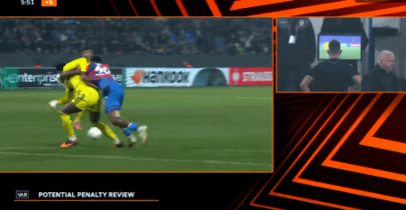 在费内巴切客场0-0战平比尔森胜利的比赛中,杜兰在伤停补时阶段在禁区内被拉倒,主裁判在观看VAR后并未判罚点球。