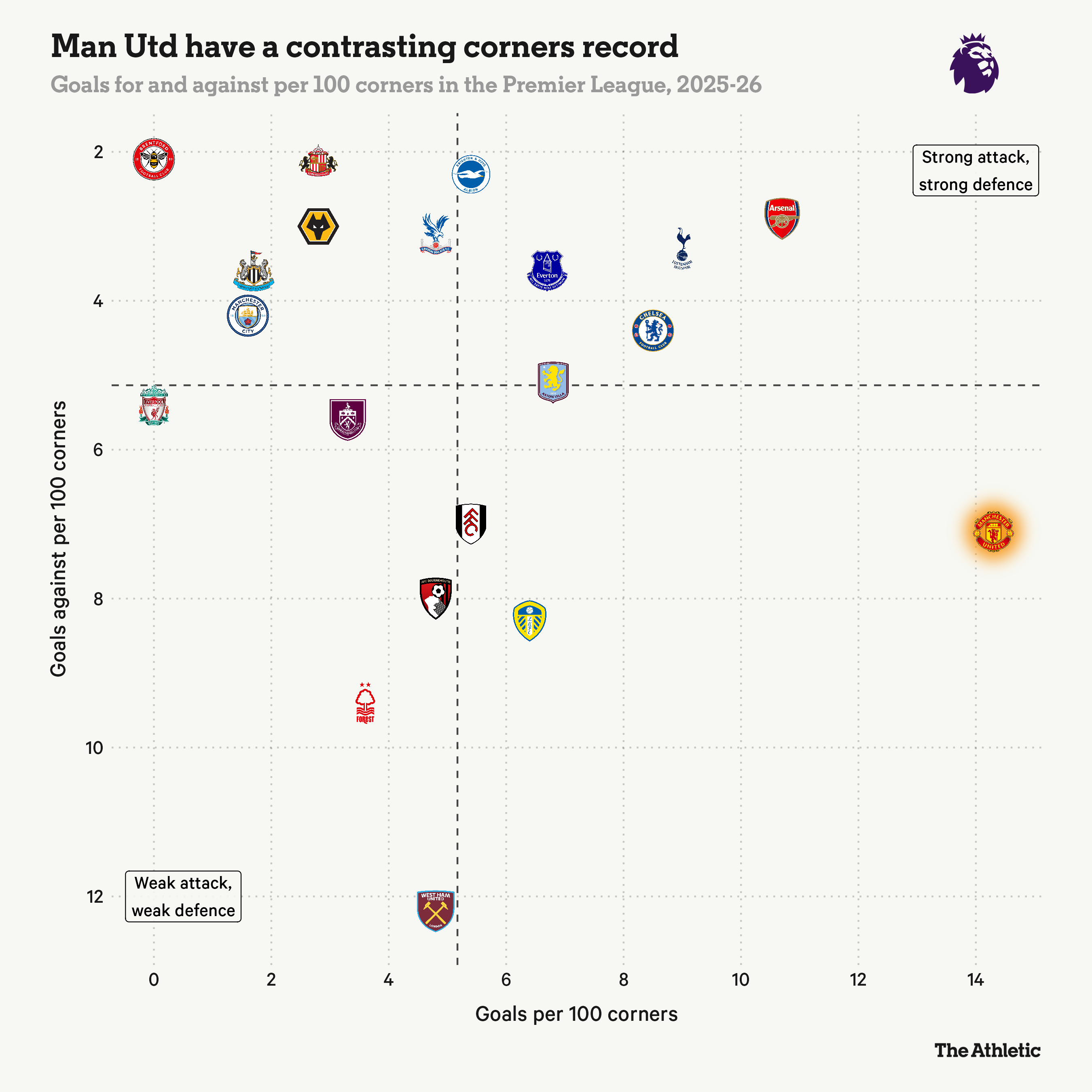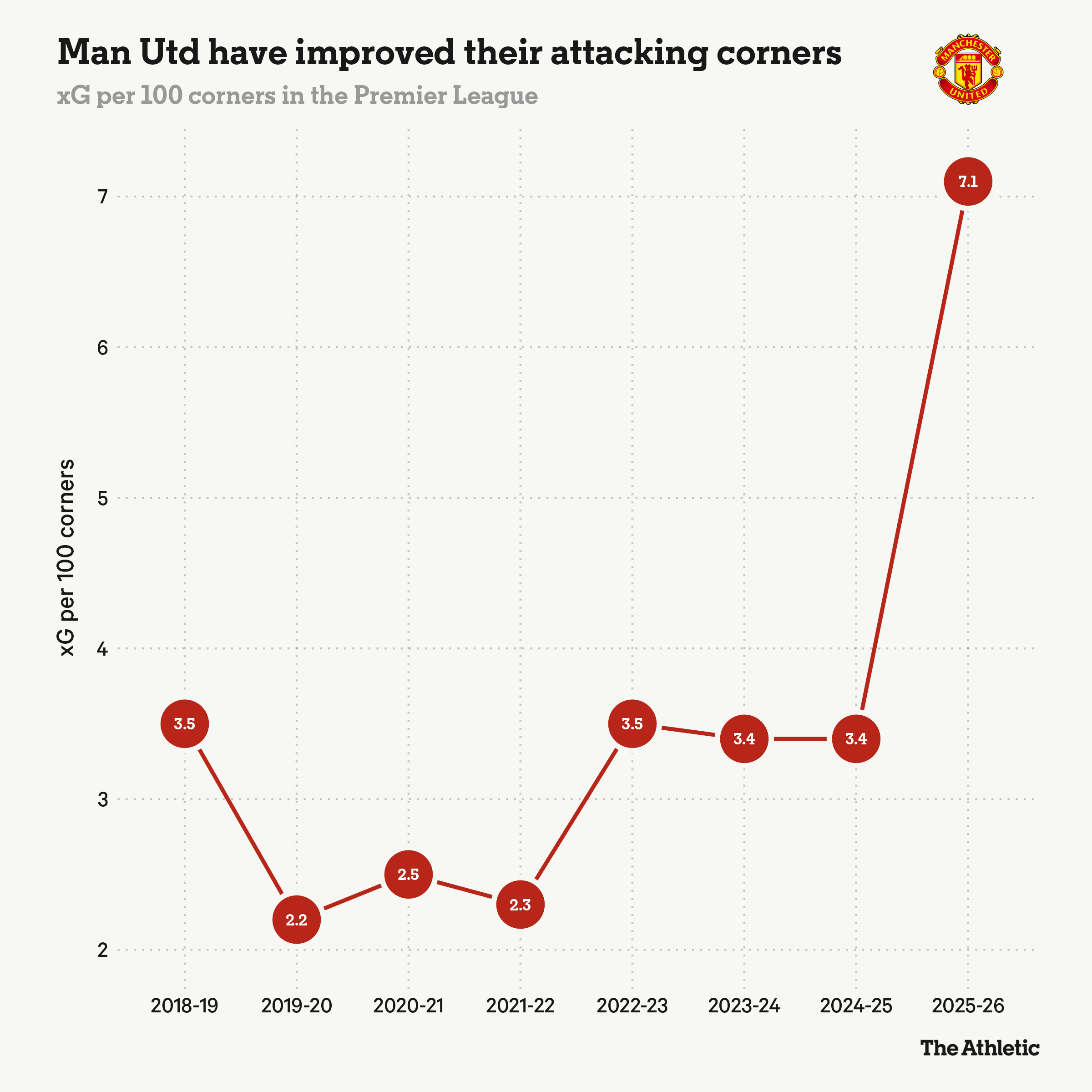 近日,权威体育媒体The Athletic发布专题文章,深度剖析曼联2025-26赛季角球战术表现。数据显示,红魔在防守端仍需改进,但进攻角球效率已跃居英超榜首,成为球队新的得分利器。