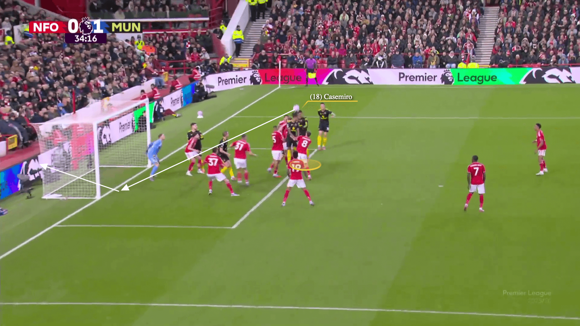 面对纯区域防守,曼联通过人员移动制造空间。德利赫特压制门将泽尔斯,卢克-肖阻挡耶茨,卡塞米罗获得自由头球机会。这一系列配合最终由卡塞米罗破门,凸显战术执行的流畅性。