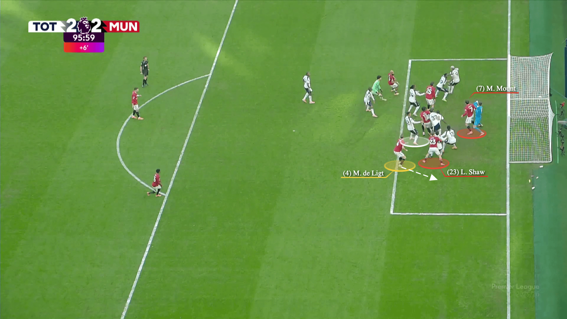 曼联的角球战术并非一成不变。在热刺一役中,随着马奎尔下场,德利赫特从阻挡者转为攻击点,梅森-芒特接替阻挡门将任务。通过假跑动作与人员换位,德利赫特最终在后点无人盯防的情况下头球破门,帮助球队扳平比分。