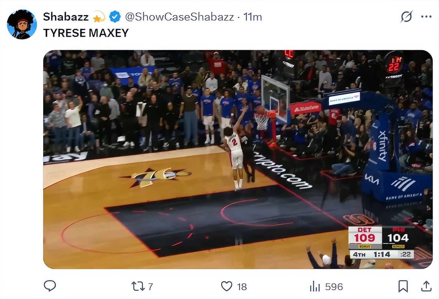 终场前1分14秒,马克西完成关键抢断并快攻暴扣,将分差缩小至3分。随后霍兰德中投不中,马克西突破制造犯规两罚全中,76人追至仅差1分。坎宁安在终场前16秒转身跳投命中关键球,尽管马克西最后时刻的三分绝平未能命中,但其全场表现已足够惊艳。