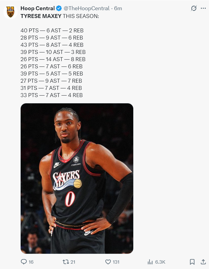 如今,谁还会质疑马克西五年2.03亿美元的合同价值?对比乔治四年2.12亿美元却表现低迷(上赛季已现端倪,本赛季尚未登场),马克西用实际行动证明了自己的天赋与价值。这位兼具得分爆发力与组织能力的控卫,正成为费城复兴的核心基石。