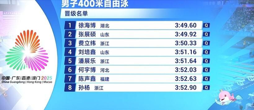 11月10日,第十五届全运会游泳项目正式拉开帷幕。在上午进行的男子400米自由泳预赛中,两位奥运冠军孙杨和潘展乐携手出战,为观众带来了一场精彩对决。最终,潘展乐以小组第二的成绩晋级,孙杨则压线入围晚间决赛。