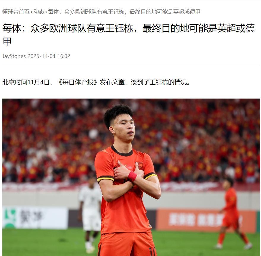若此次转会成功,王钰栋将成为继武磊之后又一位登陆欧洲联赛的中国前锋。尽管浙江队的放人态度仍是最大变数,但德乙联赛的竞技水平与成长空间,无疑为这位新星的职业生涯开辟了充满想象力的新篇章。