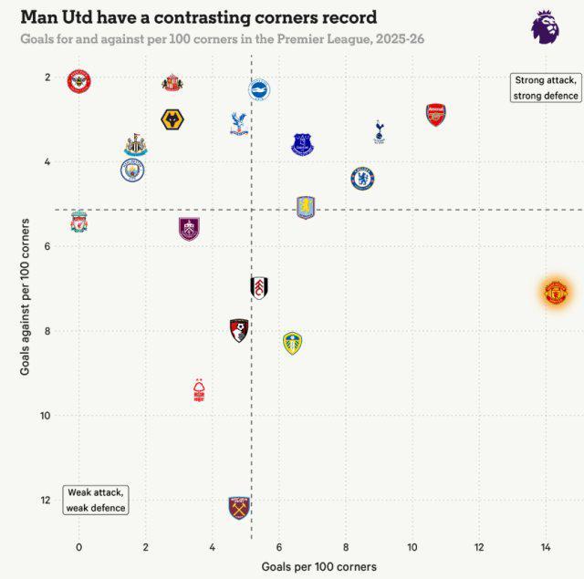 当提及曼联的定位球表现时,多数球迷的第一印象或许是防守端的漏洞百出。然而,若将焦点转向进攻端,红魔却正悄然崛起为英超赛场上的“角球之王”。这一称号并非空穴来风,而是基于一系列令人信服的数据支撑。