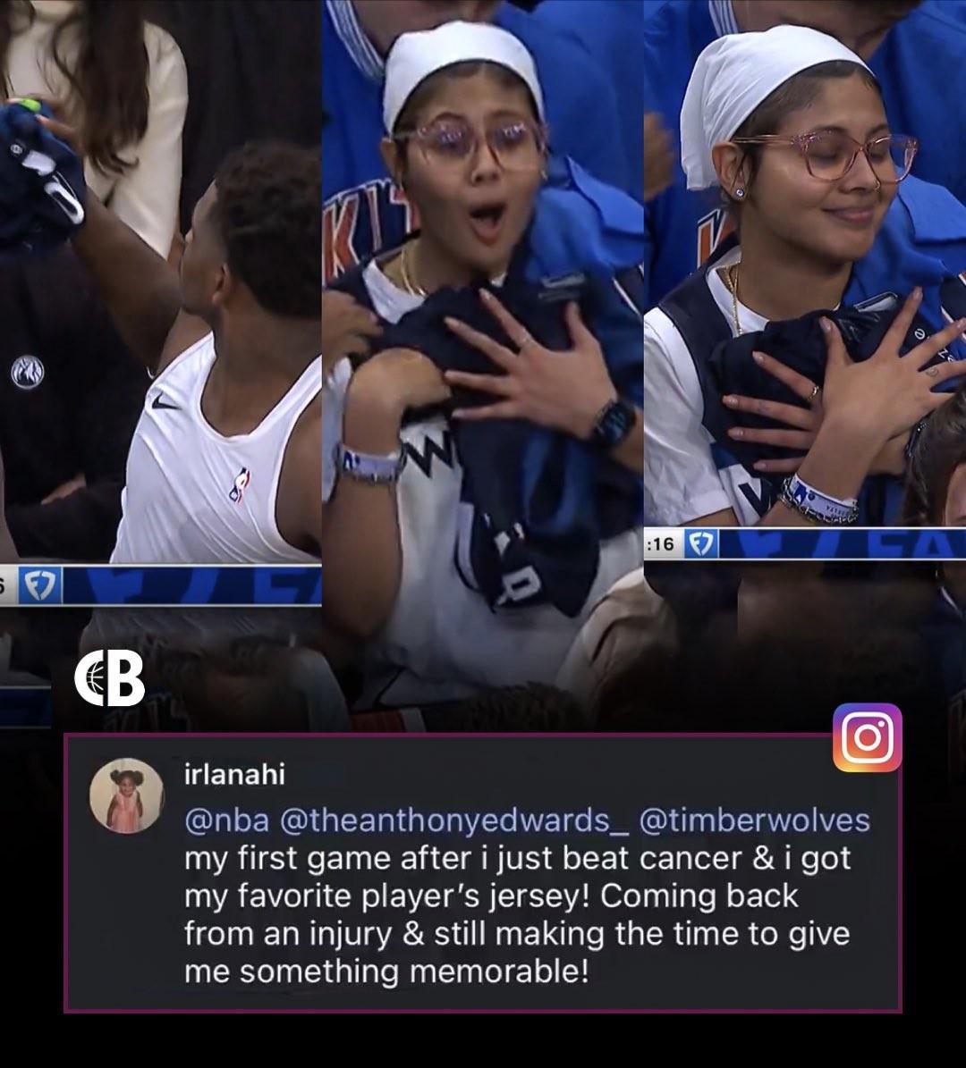 赛后,这位幸运的女球迷在社交媒体上分享了自己的喜悦与感动。她写道:“这是我战胜癌症后的第一场比赛,没想到就拿到了我最喜欢的球员爱德华兹的球衣!他刚刚伤愈复出,却还抽空为我留下了如此难忘的回忆,这真是太棒了!”女球迷的话语中充满了对爱德华兹的感激与敬意,也展现了体育精神中那份超越比赛胜负的人文关怀。