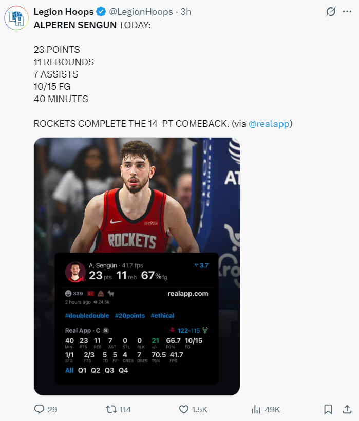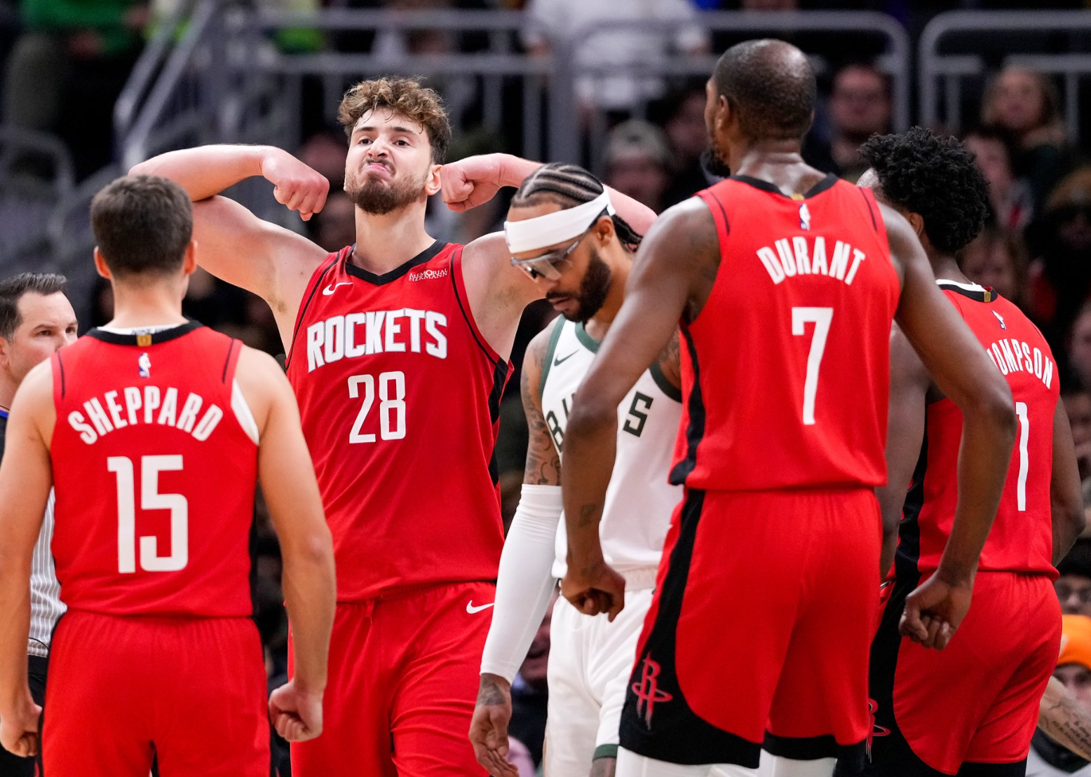 北京时间11月10日,NBA常规赛迎来一场焦点对决,休斯顿火箭队以122-115逆转密尔沃基雄鹿队,完成了一场堪称经典的逆袭之战。比赛末节还剩4分24秒时,火箭队仍落后5分,但随后他们打出了一波19-7的进攻高潮,成功逆转比分。而这场逆转的最大功臣,非火箭队中锋申京莫属。