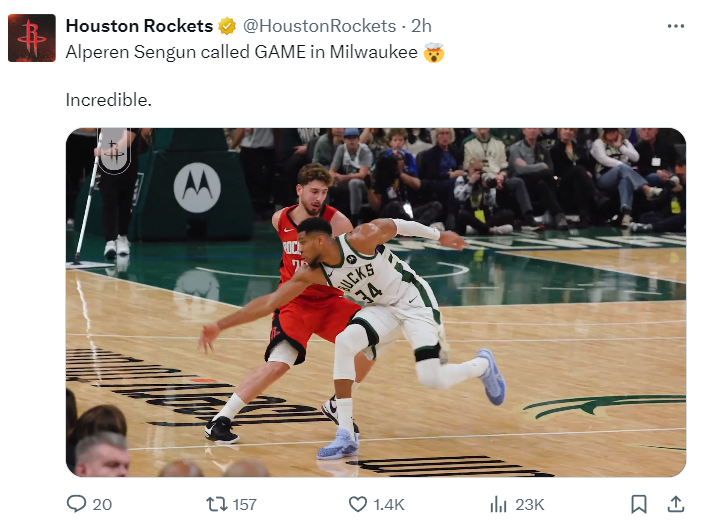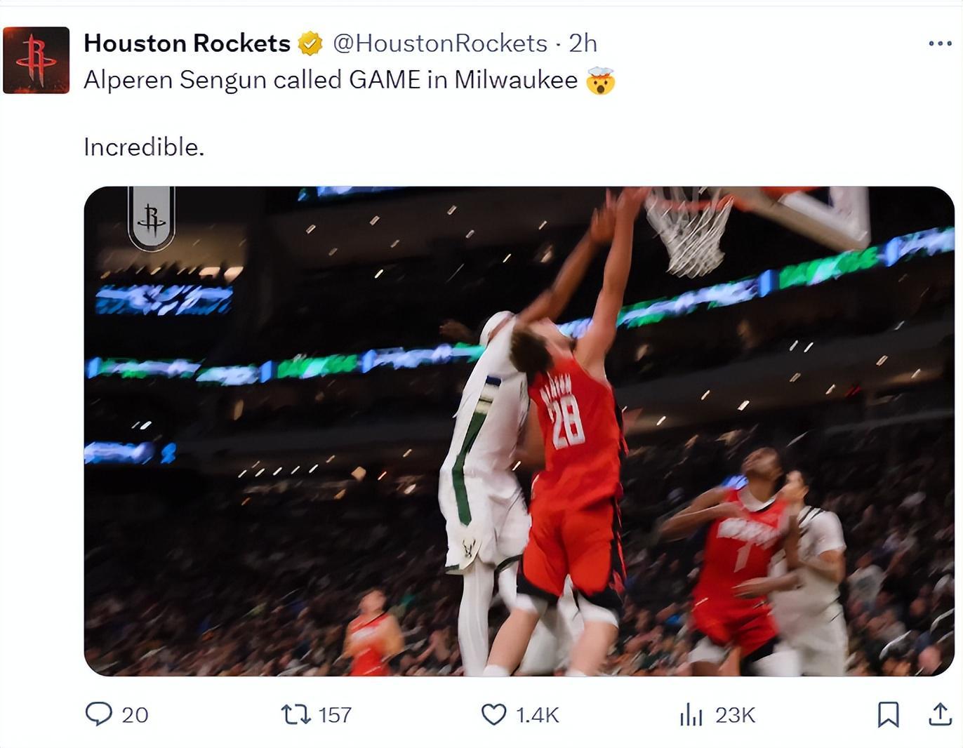 终场前23秒,火箭队已经领先雄鹿3分。此时,申京后场持球,面对扬尼斯的贴身防守。他冷静地推进到三分线位置,一个背运直接晃飞了扬尼斯。随后,面对特纳的防守,申京转身上篮并造成2+1,将分差拉开到6分,彻底锁定胜局。