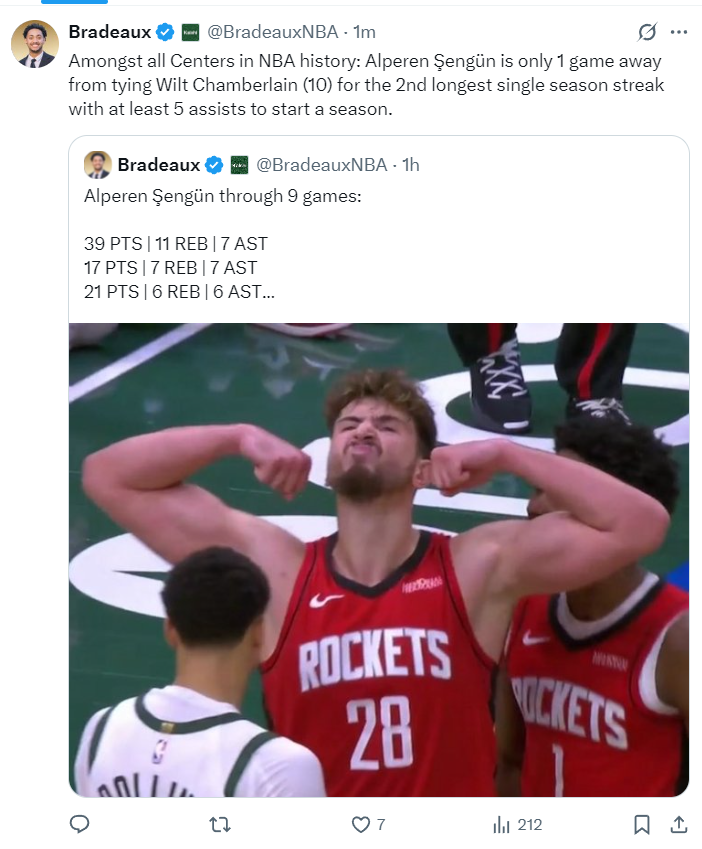 本赛季开赛后的9场比赛,申京全部都拿到了至少10分5篮板5助攻的数据,成为联盟中最全面的球员之一。他的球风与掘金队的约基奇颇为相似,都是那种能够掌控比赛节奏、攻防兼备的全能型中锋。