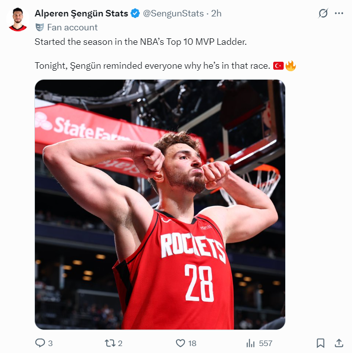 火箭队开赛9场比赛赢下了6场,而申京也已经进入了MVP前十的讨论行列。这位年仅23岁的年轻人,展现出了极高的上限和潜力,未来可期。