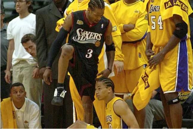 那场总决赛G1的终场前48秒,艾弗森面对泰伦·卢的防守命中关键中投,随后跨过倒地防守球员的瞬间,成为NBA历史上最经典的画面之一。这个赛季,艾弗森凭借场均31.1分4.6助攻的惊艳表现,荣膺常规赛MVP,并带领球队时隔18年重返总决赛舞台。