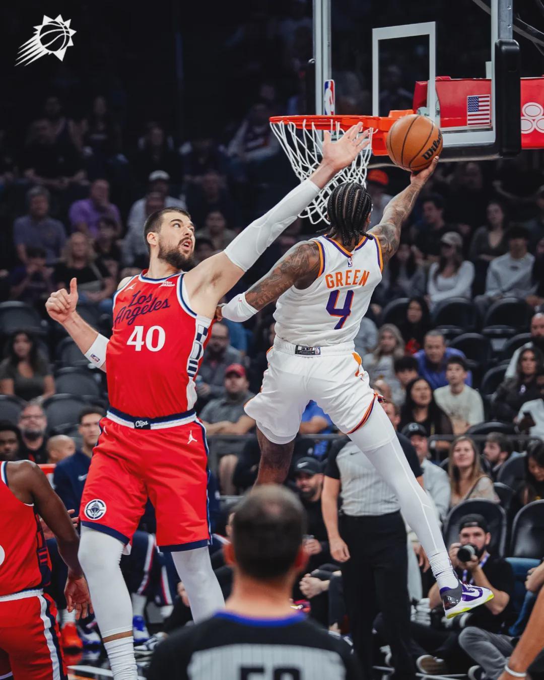 然而,在11月7日的复出首秀中,杰伦-格林却展现出了惊人的状态。他帮助太阳以115-102战胜快船,首发出战22分58秒,投篮20中10,三分13中6,罚球5中3,狂砍29分3篮板3助攻2抢断,正负值高达+30。这一表现不仅让球迷们眼前一亮,更在太阳队史上留下了浓墨重彩的一笔——这是太阳队史首秀球员的第二高分,仅次于1992年巴克利的37分。