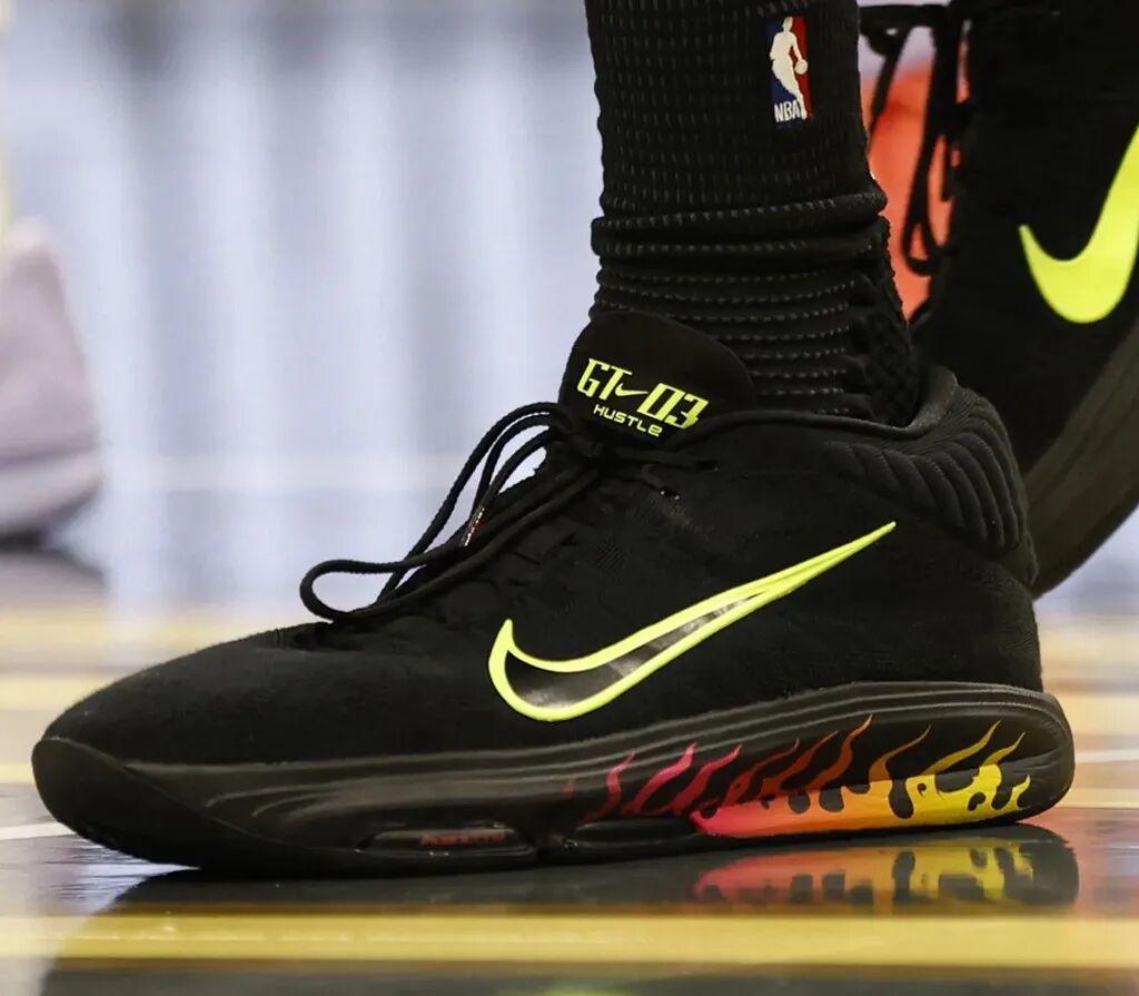 接下来是维克多·文班亚马,他选择的是Nike GT Hustle 3 PE。这双战靴设计独特,配色鲜明,彰显了文班亚马的个性与风采。