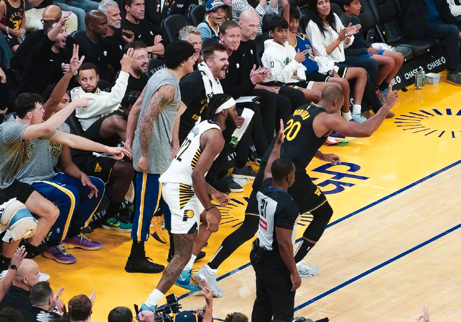 下半场回来,内姆哈德连续命中三分,步行者很快抹平分差。巴特勒又站出来连续强攻上篮,但中段步行者还是反超了比分。关键时刻,穆迪终于把握住大空位三分球,此后希尔德造杀伤,霍福德三分命中,穆迪又中压哨3+1!勇士越来越多球员开始分担巴特勒的压力,三节打完,勇士以75-65领先步行者。决战第四节,巴特勒反击暴扣,随后突分喂饼霍福德底角三分,加上理查德强攻,勇士拉开15分分差。