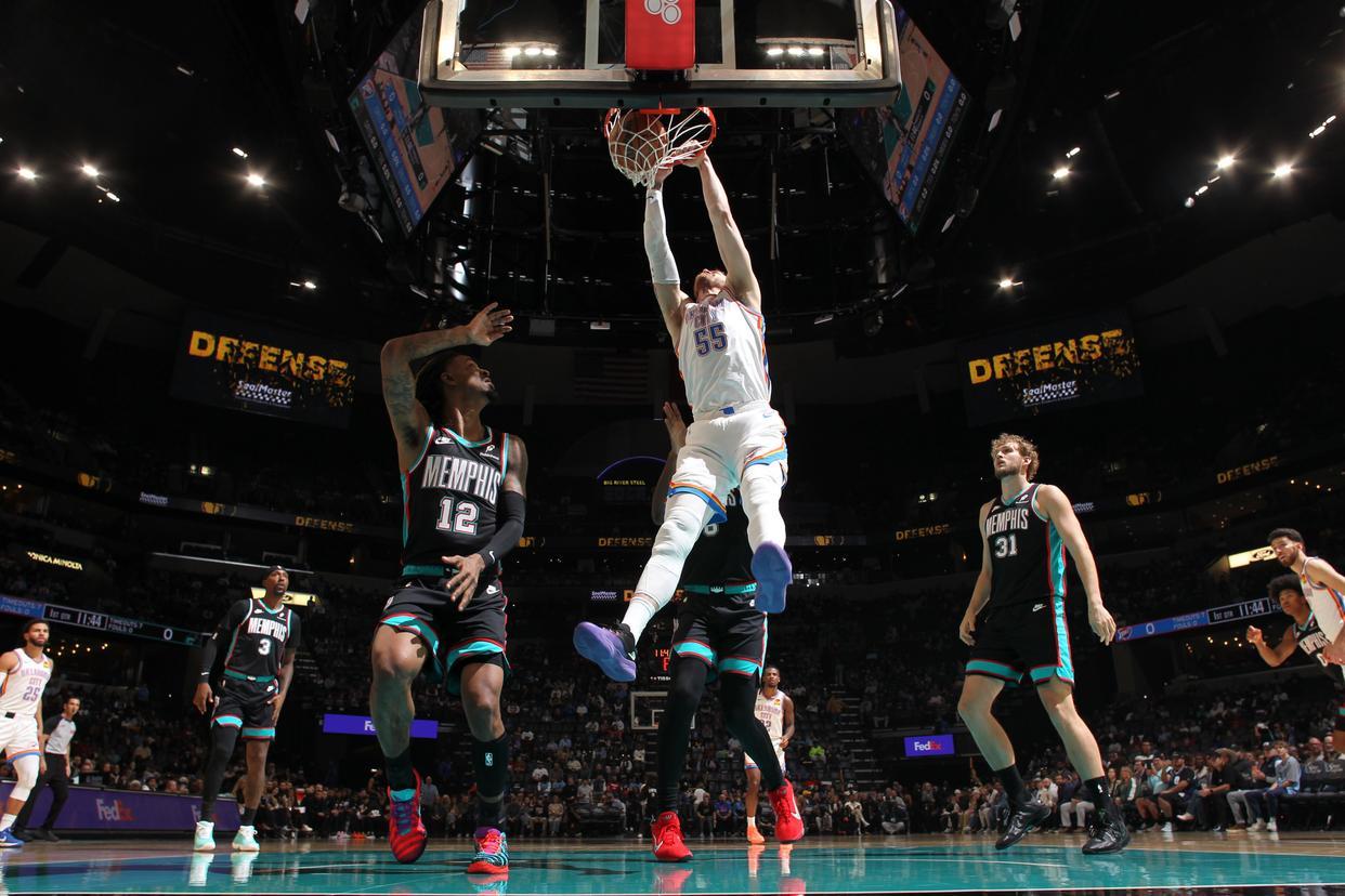 比赛伊始,两队便展开了对轰之势,分差始终难以被拉开。然而,雷霆队随后陷入得分荒,科沃德、杰克逊等人率队打出一波10比0的攻势,成功反超比分。首节打完,雷霆以25比33落后。进入次节,孟菲斯灰熊继续高举进攻大旗,一度将分差扩大至19分。OKC外线手感不佳,但在哈尔滕施泰因、霍姆格伦的带领之下,雷霆坚决冲击内线追分。半场结束,灰熊以62比51领先。