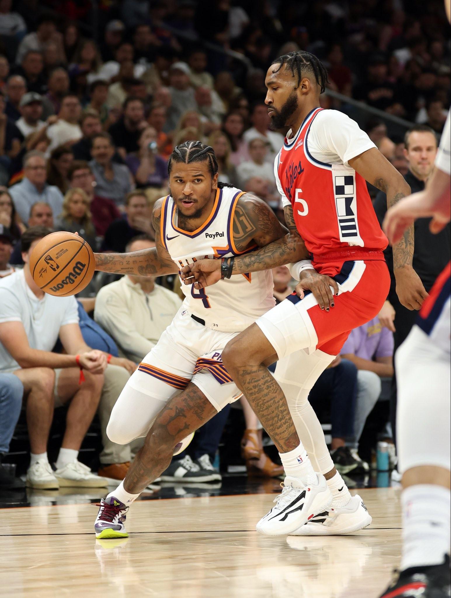 北京时间11月9日,NBA常规赛激战正酣,太阳队在客场以114-103的比分力克快船队,成功斩获两连胜。然而,在这场胜利的背后,太阳队却遭遇了一个不小的打击——球队后卫杰伦-格林在比赛中不慎拉伤右腿筋,不得不提前退出比赛。