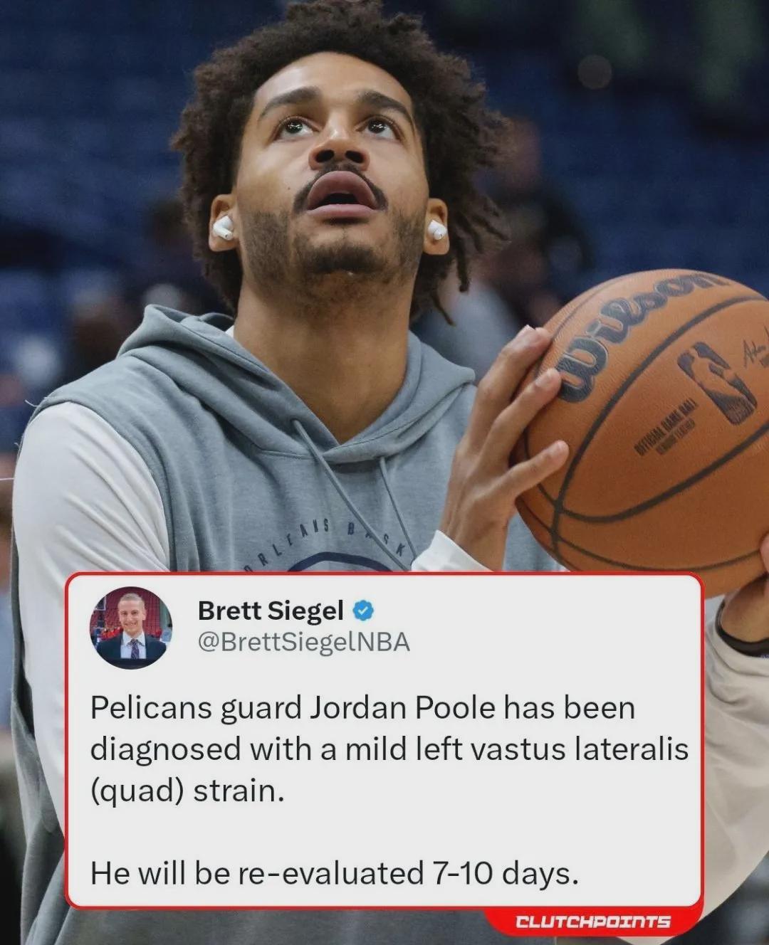前脚内线核心锡安因左腿一级腘绳肌拉伤高挂免战牌(至少休战一周),后脚外线球员普尔就因左腿股外侧肌轻度拉伤躺进医院了,预计7至10天后接受复查。