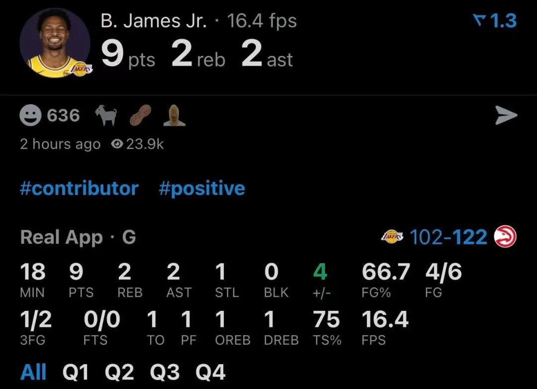 在全队全程被压制的过程中,布朗尼的正负值居然是正的,这无疑是他个人表现的一大亮点。