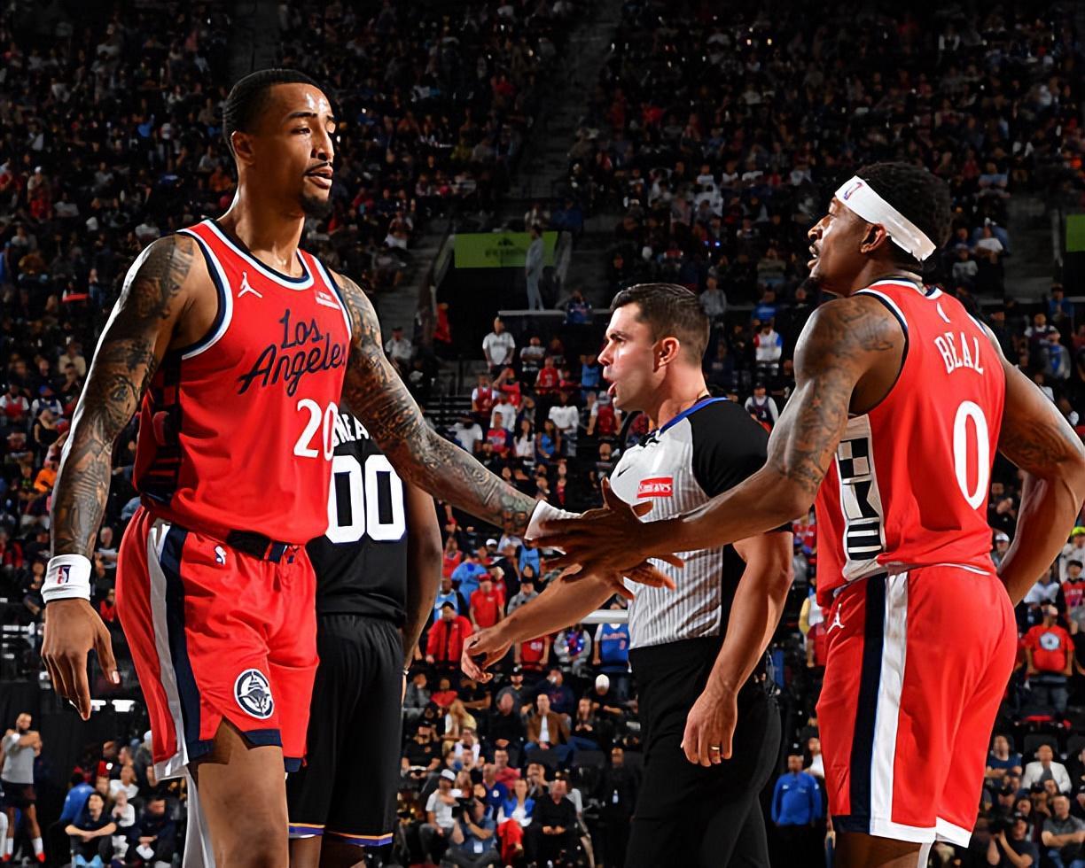 本场比赛中,快船的先发后场新援布拉德利·比尔(Bradley Beal)面对老东家的表现可圈可点。比尔全场出场19分37秒,投篮9中4,三分线外4中2,罚球2中2,贡献了12分3助攻1抢断的数据,同时还有1次失误和1次犯规,正负值为+4。比尔在进攻端效率正常,通过多种方式得分,并展现出了分享球的能力。在防守端,他也能够起到一定的作用,当他在场上时,球队的整体局面值得肯定。然而,问题在于比尔的出场时间依然受到严格限制,球队教练组选择掐点换人,再加上出手次数不多,这使得比尔很难在这种情况下发挥出自己的全部实力。如果比尔能够得到更多的出场时间,快船的竞争力或许会有明显提升。