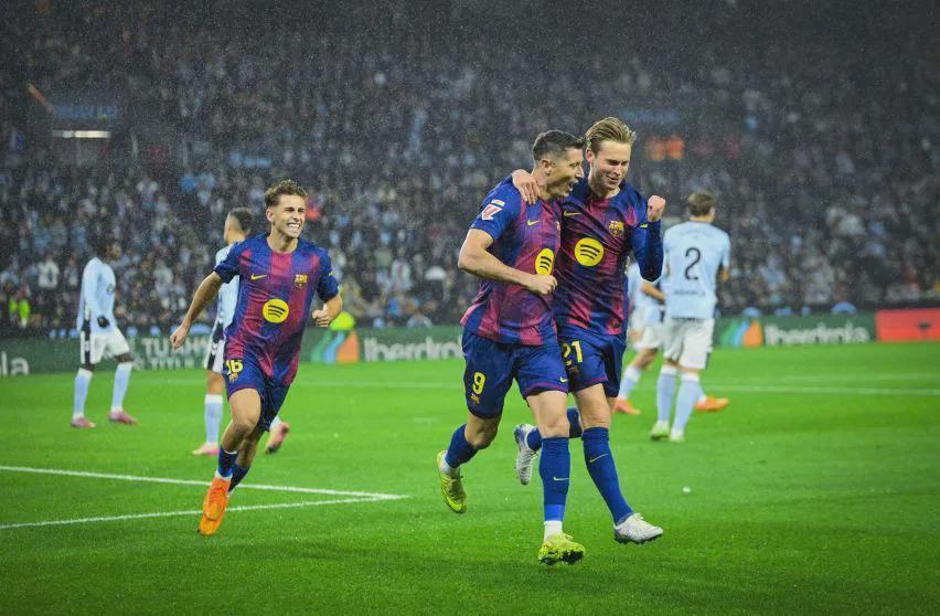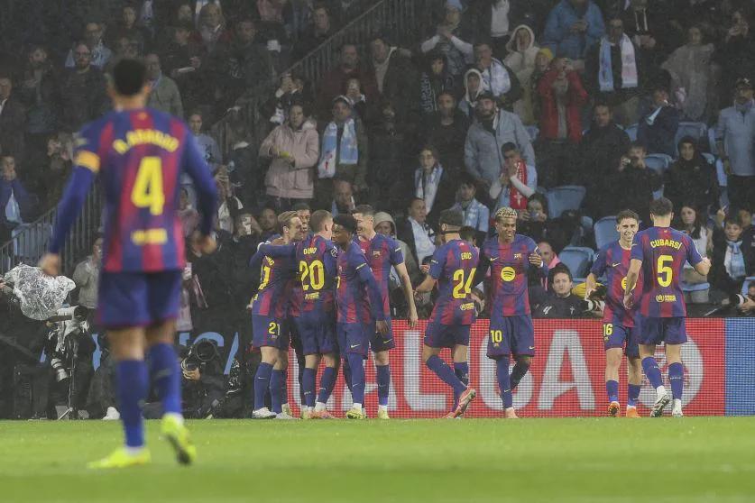 上半场比赛异常焦灼,第43分钟,塞尔塔凭借伊格莱西亚斯的进球再次将比分追平,2-2。补时阶段,亚马尔进球(连续三场比赛进球,追平职业生涯最长进球纪录),巴萨3-2再度领先。