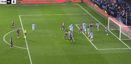 易边再战,巴塞罗那在防守端投入更多精力,没有给塞尔塔进攻的空间和机会。第73分钟,巴萨利用角球机会终结胜负悬念,拉什福德角球开出后,莱万头球破门,将领先优势扩大到4-2。波兰前锋也成为了近80年唯一一位客场对塞尔塔完成帽子戏法的巴萨球员。